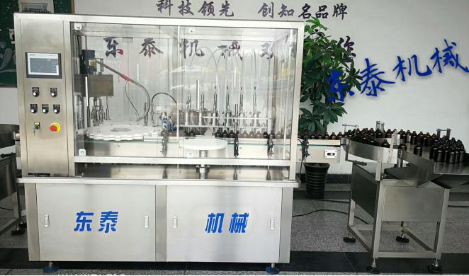 對于注重快速精準(zhǔn)的小瓶灌裝,迅捷機(jī)械拿出了自己的方案,那就是新一代的小瓶灌裝機(jī)。該小瓶灌裝機(jī)屬于全自動(dòng)旋轉(zhuǎn)式,適用于小劑量液體灌裝,如精油、眼藥水、口服液、糖漿、電子煙油、藥液等。集灌裝旋蓋為一體,灌裝穩(wěn)定精準(zhǔn),旋蓋不傷瓶,是小瓶液體灌裝的理想機(jī)器。