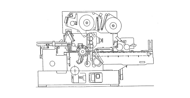 (二)機械傳動 401型小包薄膜包裝機由立勵磁的直流分路繞線式電機提供驅(qū)動力。主電機 (2)通過定時皮帶 (3)帶動主傳動軸 (1),主傳動軸 (1)將動力分配成5路。 主傳動軸上的齒輪系 (10)傳動軸 (15),軸 (15)通過傘齒輪體 (12)帶動定時皮帶 (11)。定時皮帶 (11)驅(qū)動分離輪 (13)和傳送輪 (14)2路 ,主傳動軸上的錐齒輪副 (8)帶動偏心圓盤 (16)和連桿 (17),拖動行走架 (18)和輸人推送器 (19)作往復直線運動。