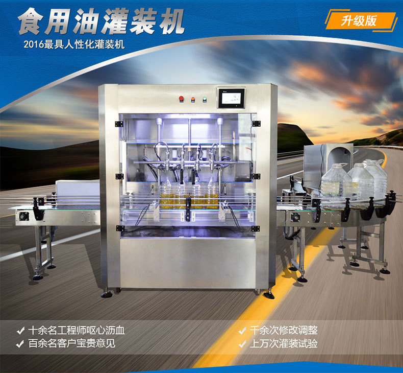 產(chǎn)品簡(jiǎn)介:全自動(dòng)玉米油灌裝機(jī)是全自動(dòng)油類(lèi)灌裝設(shè)備中比較特殊的一種,是根據(jù)玉米油的的特殊品質(zhì)而量身打造的專門(mén)用來(lái)灌裝玉米油類(lèi)產(chǎn)品的全自動(dòng)灌裝機(jī)械。該設(shè)備采用先進(jìn)的定量灌裝技術(shù),將微電子智能控制技術(shù)與程序控制應(yīng)用于本灌裝機(jī),使之成為機(jī)電一體化的新型產(chǎn)品。